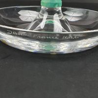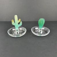 HILTON MC CONNICO (1943-2018) ET DAUM France, Années 1990 : 2 coupelles ou baguiers CACTUS en cristal incolore et pâte de verre verte, la base circulaire. Signée sur les côtés de la base Daum France et H.M.C pour Hilton Mc Connico. Période contemporaine. H. 11.5 cm et 14.3 cm. Diam. 13.5 cm. Micro-rayures. TBE. La collection Cactus a marqué l’histoire de la maison Daum. La collection en pâte de verre et cristal a été créée en 1987 et achetée par le M.A.D pour ses collections permanentes.