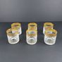 SAINT-LOUIS, THISTLE, Période contemporaine : Suite de 6 verres à whisky modèle cylindrique moyen or en cristal et frises or de rinceaux feuillagés et palmettes, la base circulaire étoilée, le corps à fines côtes vénitiennes et facettes lancéolées. Cachet. H. 9 cm. micro-rayures. TBE, quasi-neuf.Emblème de la ville de Nancy, le chardon a inspiré en 1908 un premier service. En 1913, le nom s’anglicise pour devenir Thistle.
