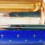 SALIMBENI, Italie, XXe siècle : tabatière bombée en vermeil 925 mil. guilloché d’ondes et émail bleu à décor fleurdelisé or. Poinçon italien post 1968 de titre et d’atelier florentin N° 391. Cygne. Poids :165.7 g. Dim. 3 x 10.3 x 4.5 cm. TBE. La maison a été fondée en 1891.
