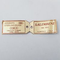 SALIMBENI, Italie, XXe siècle : tabatière rectangulaire en vermeil 925 mil. le couvercle à guillochage d’ondes et émail bleu à liseré blanc décor fleurdelisé or. Poinçon italien post 1968 de titre et d’atelier florentin N° 391. Cygne. Poids : 130.8 g. Dim. 2 x 7 x 5 cm. Porte une signature ODIOT. TBE. La maison a été fondée en 1891.