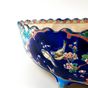 LONGWY - Jardinière oblongue à bord festonné en faïence à décor émaillé polychrome de fleurs et d’oiseaux, elle repose sur 4 pieds. Marque sous la base. Dimensions : 13 x 38 x 22,5 cm. (Restaurations).