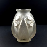 MULLER Frères à Lunéville, Vase ovoïde en verre moulé pressé et satiné à décor géométrique sur base à pans coupés. Epoque Art Déco. Signé sous la base. Hauteur : 19,5 cm. (Légers éclat et égrenures).