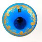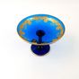 SAINT-LOUIS, Coupe sur piédouche en cristal bleu, liseré et décor doré tournant de rinceaux feuillagés et coquilles. Marque sous la base. Hauteur : 11,5 cm. Diamètre : 15,4 cm.