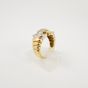 Bague 2 ors 750 mil. à décor de godrons, sertie de diamants brillantés et 8/8, travail français (TDD : 49,5) (largeur : 1 cm environ) (éclats). 6,9 g. brut
