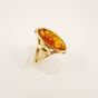 Bague marquise en or 750 mil. ornée d’une pierre d’ambre ovale dans un décor de style Art Nouveau (TDD : 60) (largeur : 2,4 cm environ) (petits éclats). 4,4 g. brut