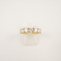 Demi-alliance US en or 750 mil. ornée de 7 diamants brillantés de 0,25 carat chacun (TDD : 53,5) (trace de mise à grandeur, chiffrée). 5,5 g. brut
