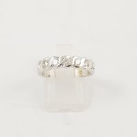 Demi-alliance en or 750 mil rhodié, ornée de diamants dans un serti en "S" (environ 0,55 ct au total) (TDD : 53,5). 4,6 g brut.