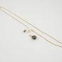 Deux pendentifs en or 750 mil dont un orné d’une perle de culture blanche (diamètre : 11 mm), la bélière sertie de diamants brillantés; et un orné d’une perle de culture grise poire (diamètre : 8,9 mm) ; collier en or 750 mil à maillons gourmette (longueur : 40 cm). 6,9 g. brut.