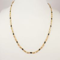 Collier en or 750 mil. à maille figaro alternée de saphirs navettes en sertis clos. Travail français. (Longueur : 42 cm). 7,8 g.