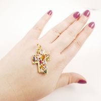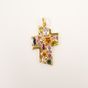 Pendentif croix asymétrique en or 750 mil. sertie de pierres imitations multicolores tailles fantaisies. (Hauteur : 3,5 cm). 7,1 g. brut
