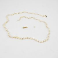 Collier accidenté de perles de culture (à renfiler) (Diam : de  3,2 à 4,8 mm), fermoir en or 585 mil. 8,3 g brut.