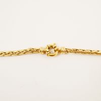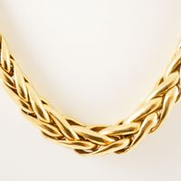 Collier en or 750 mil à maille palmier en chute (Longueur : 44 cm environ) (Petits manques de matière, chocs, déformations). 26,6 g.