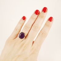 Bague en or 750 mil. ornée d’une améthyste taille coussin, travail français (TDD : 52) (dimensions pierre : 15,1 x 12,2 x 6,6 mm environ). 4,5 g. brut