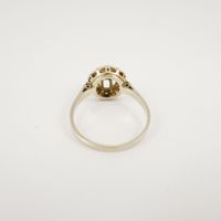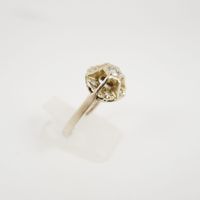 Bague fleur en or gris 585 mil. centrée d’un diama
