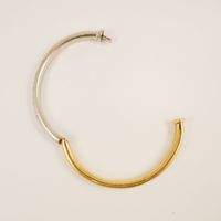 Bracelet jonc ouvrant 2 ors 585 mil. serti de 14 diamants brillantés de 0,06 carat environ (diamètre : 6 cm environ) (longueur : 17 cm environ) (largeur :0,6 cm environ) (fermoir défectueux). 28,8 g. brut