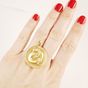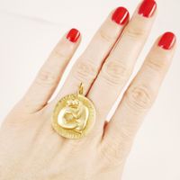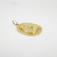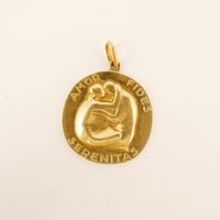 Médaille en or 750 mil. figurant un couple stylisé enlacé et portant l’inscription « Amor Fides Serenitas » (dimensions : 3,6 x 2,7 cm environ) (traces de chiffre). 13,5 g.
