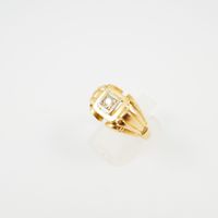 Bague Tank deux ors 750 mil. godronnée orné d’un diamant brillanté de 0,07 carat en serti carré. (TDD : 60). 3,8 g. brut