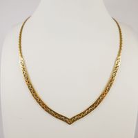 Collier en or 750 mil à motif central de 3 tons, fermoir avec huit de sûreté (longueur : 43,5 cm) (légères déformations, fermoir monté à l'envers). 16,9 g.