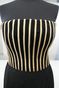 GIANFRANCO FERRE made in Italy. Ensemble, composé : - d’un bustier élastique rayé noir et ivoire à balconnet et muni de baleines. Fermeture éclair sur le côté. Taille 40 IT. Griffe blanche, graphisme noir. Taches. - Et une jupe longue noire droite. Longueur 99cm environ. Taille 42 IT. Griffe blanche, graphisme noir. Taches, décousue, lustrée.
