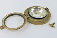 HERMES Paris – RAVINET D’ENFERT. Cendrier en laiton doré de forme circulaire modèle « Hublot » Signé HERMES-Paris, poinçon de RAVINET D’ENFERT. Diam. 15,5cm environ. Taches, petits chocs.Se démonte pour nettoyer le cendrier