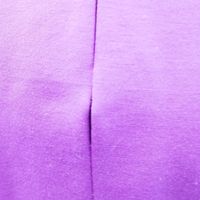 YVES SAINT-LAURENT. Robe violette taille 38 manches longues, froncée à la taille, zippée dans le dos à faux col Claudine. Longueur : 90cm environ. Griffe blanche, graphisme noir. Tache (dos col), décousue sur l’arrière.