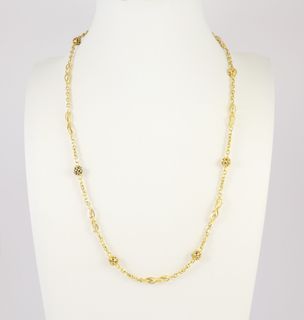 340 / 380 €Collier en or 750 mil. à maille forçat alternée de boule filigranée ajourée et de maillons torsadés. (Longueur : 46 cm). 11,4 g. brut
