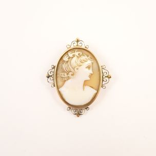 Broche en or 585 mil. ornée d'un camée coquille fi