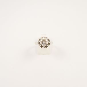 100 / 150 €Bague solitaire en or 750 mil. ornée d'un diamant brillanté de 0,15 carat en serti illusion. (TDD : 52). 1,7 g. brut