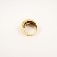 Bague jonc bombée 3 ors 750 mil. à décor godronné sertie de 3 rangs de diamants 8/8. (TDD : 59). 7 g. brut