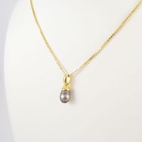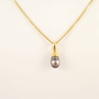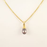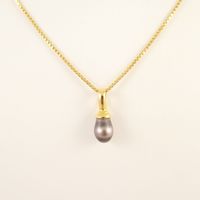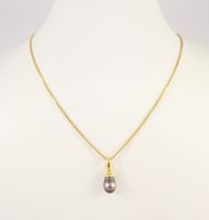 Collier à maille vénitienne et Pendentif en or 750 mi., le pendentif retenant en pampille une perle de culture grise de forme poire (diamètre : 7,1 mm). (Longueur collier : 55 cm). 7,8 g. brut