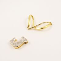 Deux pendentifs en or 750 mil., l’un de forme libre sertie de diamants brillantés (manque pierres) (Haut. : 3 cm) et l’autre « J » pavé de diamants 8/8 (Haut : 1,4 cm). 6,1 g. brut