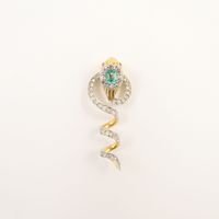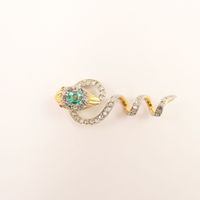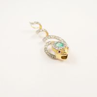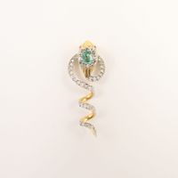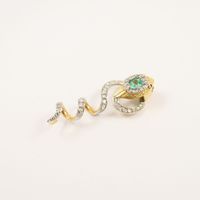 Pendentif « Serpent » en or 750 mil. et platine 850 mil. ornée d’une émeraude de 0,20 carat environ, les yeux sertis de rubis et rehaussé de diamants taillés en roses. (Longueur : 4 cm). (Pierres cassées). 5 g. brut