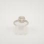 Bague solitaire en or gris 750 mil. ornée d’un diamant brillanté de 0,50 carat environ entouré et épaulé de diamants brillantés (TDD : 50) (largeur : 0,8 cm environ) (tout petits éclats). 3,1 g. brut