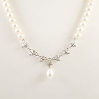 Collier de perles de culture d’eau douce d’un rang centré d’un motif à décor végétal serti de diamants brillantés et retenant en pampille une perle de culture en forme de poire, motif et fermoir en or gris 750 mil. (longueur : 42,5 cm environ) (longueur motif : 4,8 cm environ) (diamètre perles : 5,9 mm environ). 20,8 g. brut