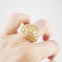 Large bague cœur en or 750 mil. pavée de diamants brillantés (TDD : 55) (largeur : 1,7 cm environ) (petits éclats, 4 diamants cassés). 15,1 g. brut