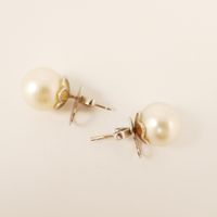 Paire de boutons d’oreilles en or gris 585 mil. ornés chacun d’une importante perle de culture (diamètre : 12,5 mm environ) (un système défectueux). 7,7 g. brut