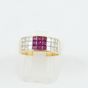 Bague bandeau en or 750 mil centrée d'un pavage de rubis calibrés épaulé de deux pavages de diamants taile princesse signée WEMPE (TDD : 59,5). 6 g brut.