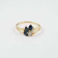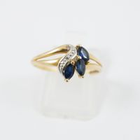 Bague en or 750 mil ornée de 3 saphirs navette et