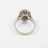 Bague fleur en or gris 750 mil centrée d'un saphir