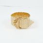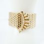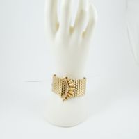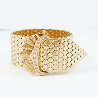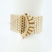 Bracelet manchette en or 750 mil à maillons losangique, fermoir "rayonnant" agrémenté de diamants 8/8 (Long : 18 cm maximum; Larg : 2,7 cm environ) (Petits chocs). 73,8 g brut.