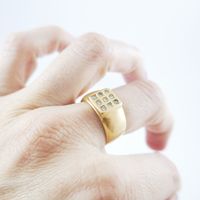 Bague bandeau en or 750 mil. à chaton carré serti de diamants brillantés (TDD : 58) (largeur : 1,1 cm environ). 9,2 g. brut