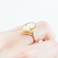 Bague en or 375 mil. chaton ovale retenant un camée coquille à profil féminin en serti clos. (TDD : 56) (camée accidenté). 4,7 gr brut.