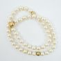 [Exempté : art. 524 bis du CGI al. c] Collier de perles de culture d’un rang, fermoir et 2 boules en or 750 mil. (longueur : 48 cm environ) (diamètre : 8 mm environ) (choc sur le fermoir). 42,5 g. brut