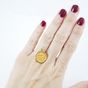 UNOAERRE. Médaille d’Amour en or 750 mil. portant l’inscription en italien « + Di ieri - Di domani » (plus qu’hier, moins que demain), signée (diamètre : 1,8 cm environ). 2,7 g.