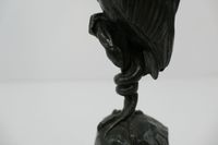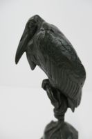 Antoine-Louis BARYE (1796-1875) « Marabout et serpent » Epreuve en bronze à patine verte. Signée sur la terrasse et marque « F. Barbedienne Fondeur ». Fonte posthume, édition Barbedienne à partir de 1876. Sur un socle octogonal en marbre veiné. Hauteur hors socle : 13 cm, hauteur totale : 17 cm. Bibliographie: Michel Poletti et Alain Richarme, Barye, Catalogue raisonné des sculptures, répertorié sous le n°A200 p. 341. Expert : M. Alexandre Lacroix.