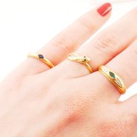 3 bagues en or 750 mil. dont une figurant un serpent aux yeux sertis de pierres imitations. (TDD : 53), une sertie d’une émeraude dans un entourage de diamants 8/8, (TDD : 53), et une sertie d’un petit saphir (TDD : 52) (égrisures, légères déformations). 4,8 g. brut.