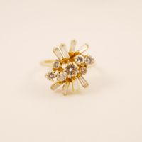 Bague bouquet en or 750 mil. sertie de diamants brillantés et tapers de 0,16 à 0,05 carat environ (TDD : 54) (largeur : 1,7 cm environ) (éclats). 4,5 g. brut