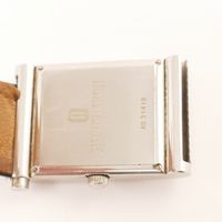 BOUCHERON, Reflet. Montre-bracelet d’homme en acier et plaqué or. Boîtier fond fermeture à vis. Cadran blanc avec guillochage au centre, index bâtons et chiffres romains appliqués, trotteuse centrale et date à guichet. Mouvement quartz. Bracelet en cuir avec attaches coulissantes. Dimensions : 24 x 36 mm environ. N° de Série : AD 31418. Sans écrin ni papiers.