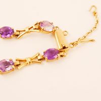 Bracelet en or 750 mil. serti de 9 améthystes ovales, avec chaînette et huit de sécurité (longueur : 18,5 cm environ) (manque). 9,2 g. brut.
