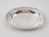 CHRISTOFLE-GALLIA, Années 1930-1940 : Corbeille ou plat creux ovale vintage en métal argenté, modèle chantourné à coquille et moulures de doucine et filets. Signé avec le symbole au Coq. Ancien poinçon carré Christofle 1935-1983. Dim. 4 x 31.5 x 24 cm. Légères rayures. TBE.